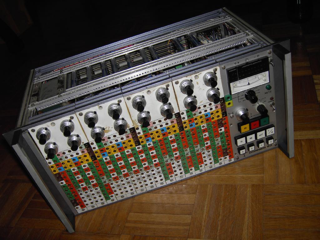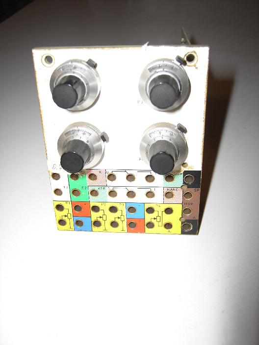 Einer meiner beiden DO-80-Analogrechner wurde vom Institut für spanende Fertigung der Universität Dortmund gespendet, wofür ich Herrn Professor Weinert und Herrn Krückendorf von ganzem Herzen danken möchte. Die Mehrzahl der folgenden Bilder zeigen dieses System, da es in besserem Erhaltungszustand als das andere ist. Das Bild links zeigt die ältere Version des Kontrolleinschubes, der (von oben nach unten) grob in drei Abschnitte unterteilt werden kann: