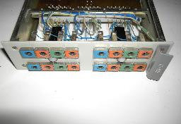 Das Bild unten zeigt ein auswechselbares Steckfeld für die MEDA 43. Dieses Steckfeld kann vor der eigentlichen Front des Rechners montiert werden und kontaktiert die dahinterliegenden 4mm Buchsen mit Hilfe sehr (!) fragiler Federkontakte. |