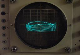 With the aid of the iterating integrator described above it is possible to draw a family of sixteen lines of airflow around this airofoil. The airofoil is drawn in the first 5 ms half of a 10 ms clock cycle while one line of airflow is drawn in the second 5 ms part of such a clock cycle. After sixteen cycles the integrator selecting the particular line of flow will be reset etc. |